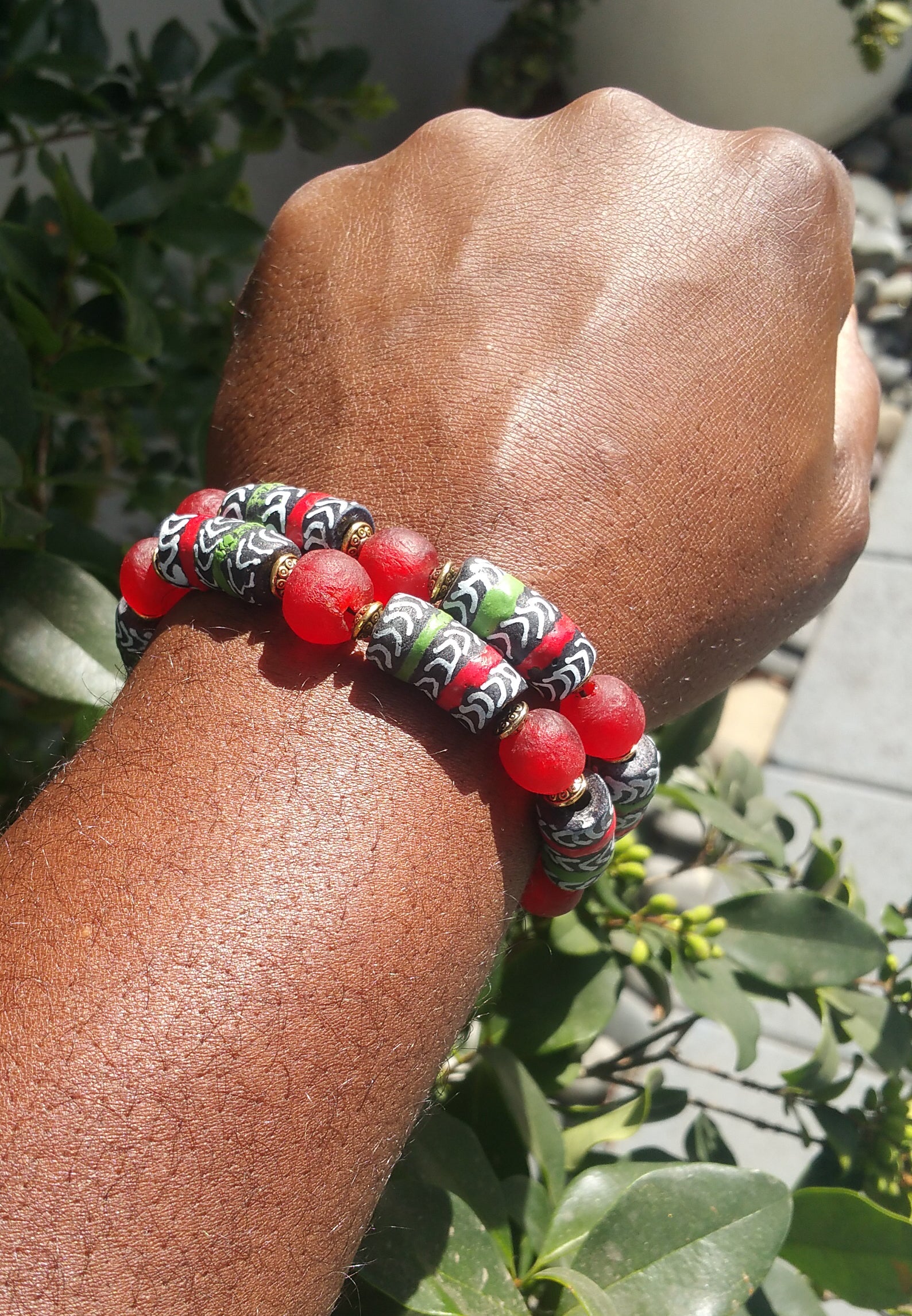 8mm Black And White African Trade | Green Ceramic | Bead Bracelet