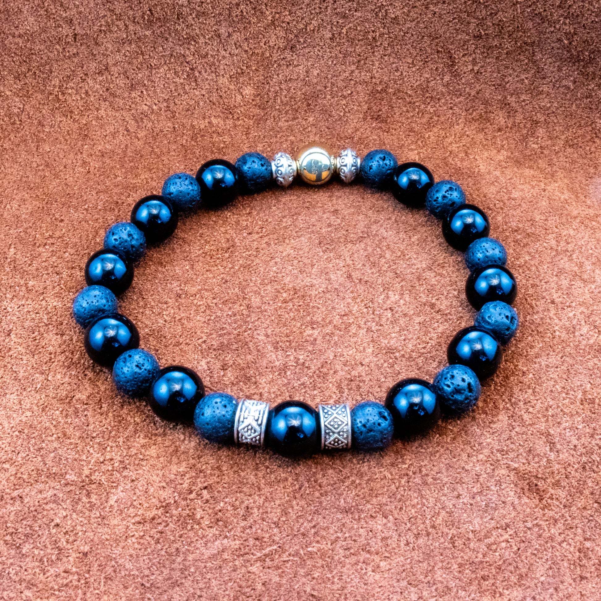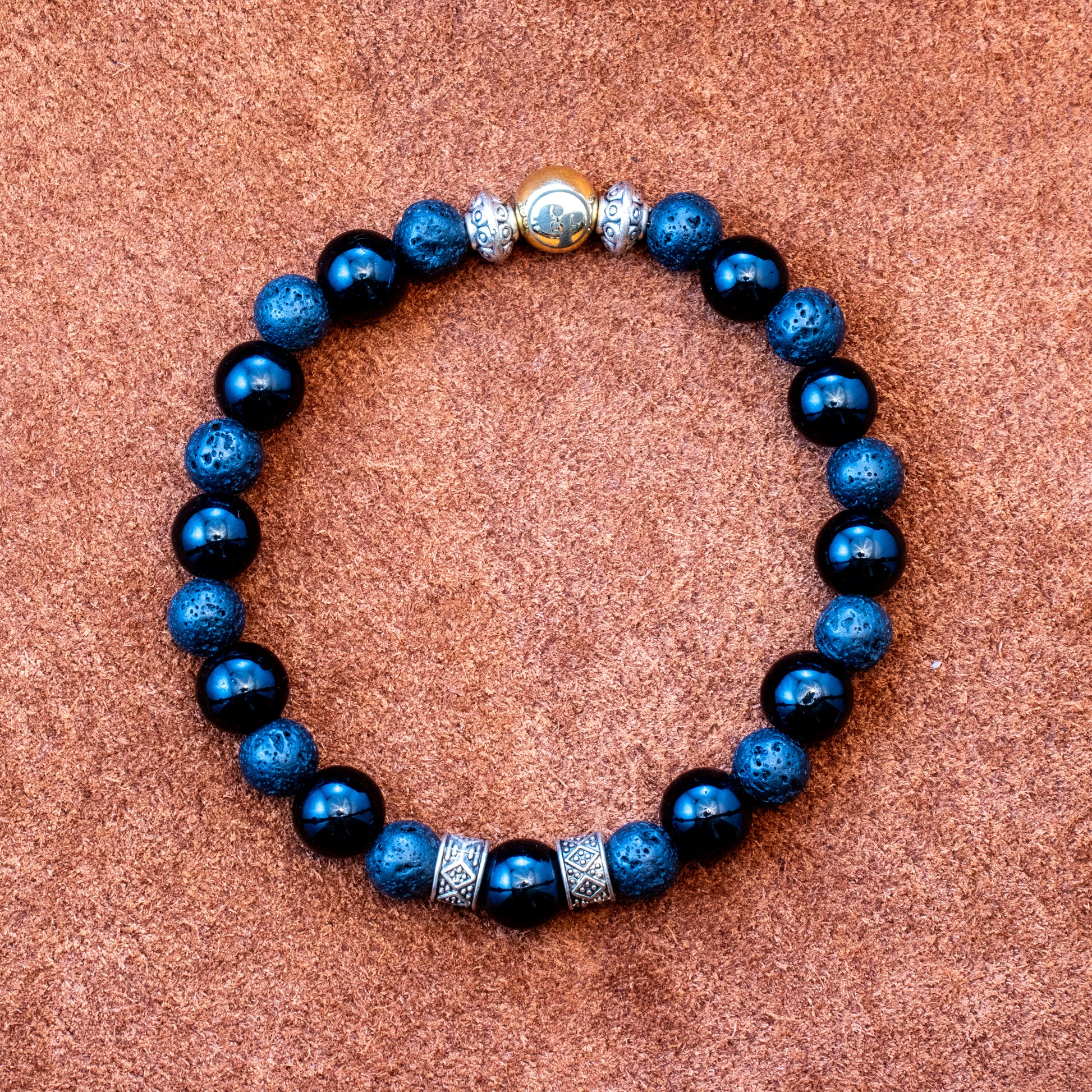 Lava Stone: Infused with the raw energy of volcanic forces, the lava stone beads add a rugged and elemental touch to the bracelet. These porous beads not only contribute to the bracelet's dynamic aesthetic but also serve as a natural diffuser for your favorite essential oils, allowing you to carry aromatherapy benefits wherever you go.